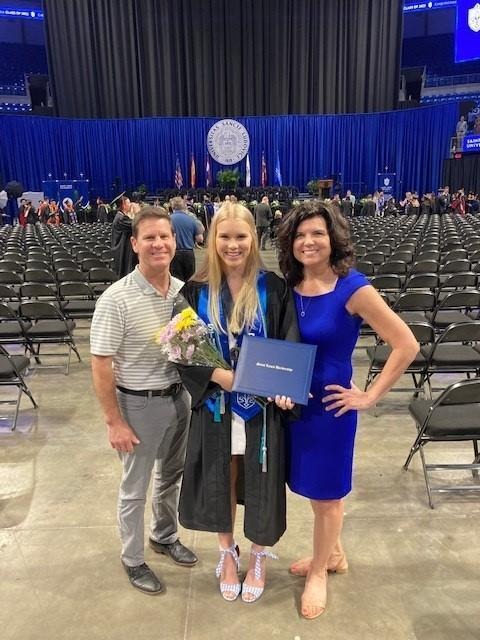 Betty's daughter, Abby, graduated from Saint Louis University on Thursday, May 19 with a Civil Engineering degree. The event will not only be remembered because of the accomplishment, but also due to the tornado warning interruption! Abby will be attending Baylor University in Waco, Texas this fall as she pursues her intellectual property law degree.